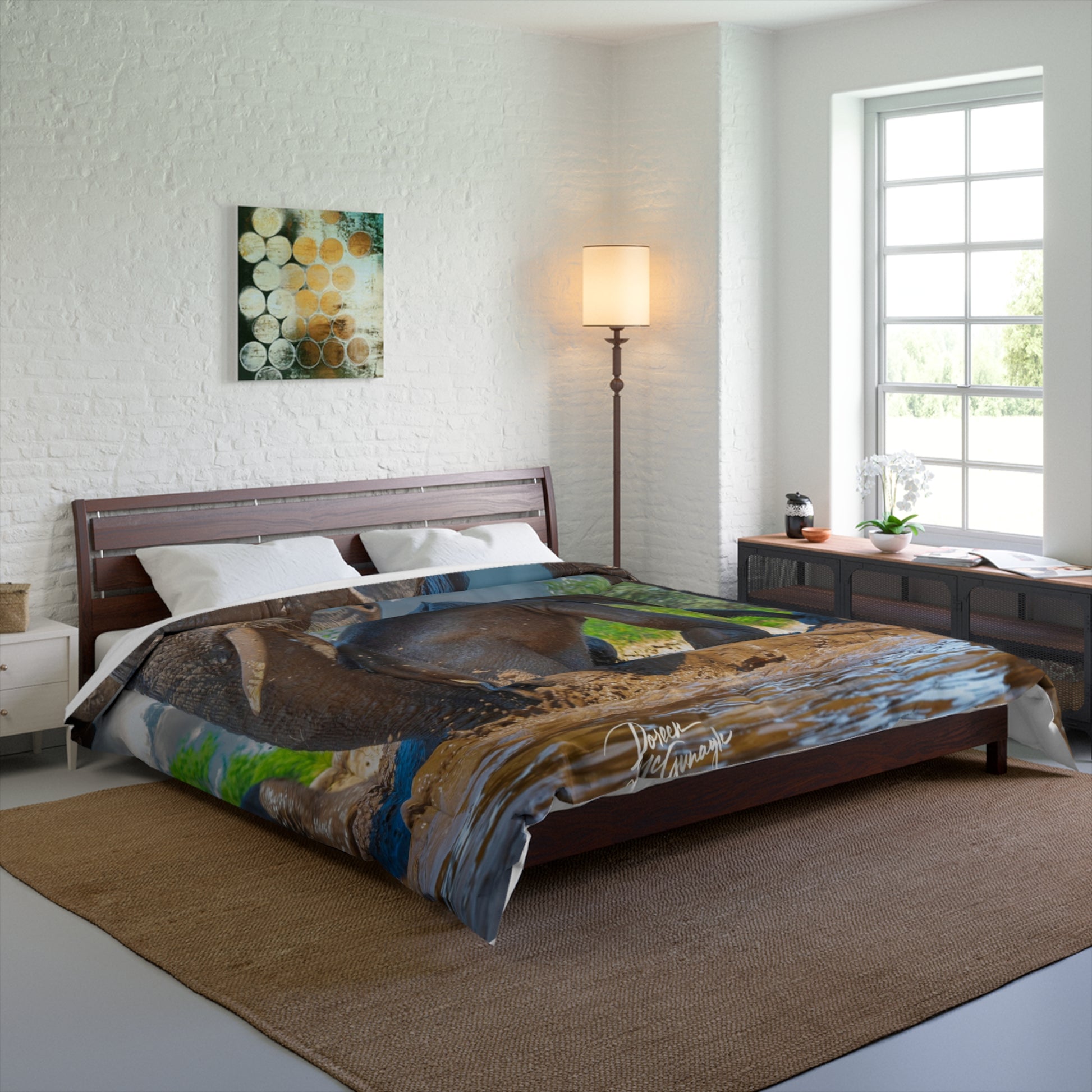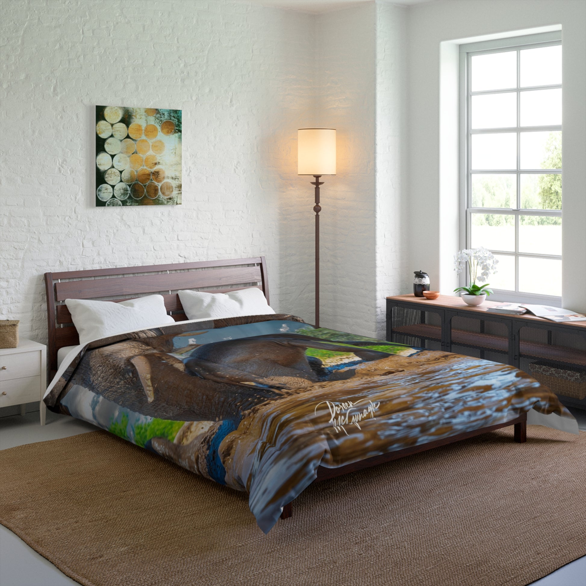 Transform your bedroom into a serene retreat with the Elephant Baby with Mom's Gentle Touch Comforter by Enjoy Nature. This exquisite comforter, adorned with a heartwarming design of a baby elephant with its mother's gentle touch, is perfect for those seeking earthy bedroom décor. Designed to infuse your space with a touch of nature, this comforter is an ideal addition to any earthy bedroom.