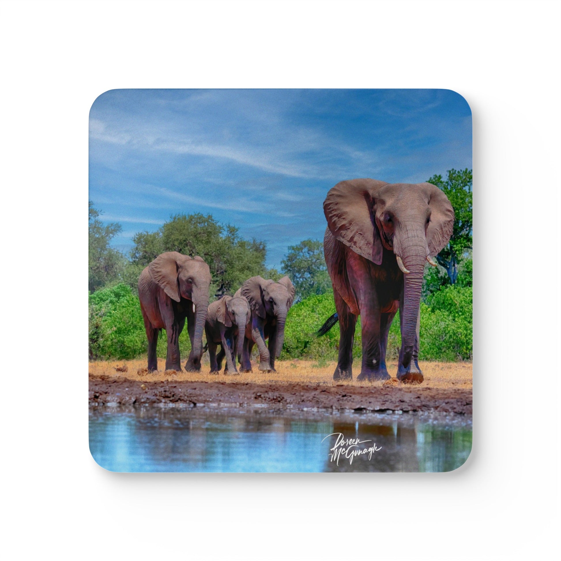 Add a touch of the natural world and communal elegance to your table setting with our Elephant Family Corkwood Coaster Set. Perfect for those who value wildlife coasters and artistic expressions in everyday objects. Enjoy the perfect blend of beauty and practicality, and let our coasters be a conversation starter at your next gathering!