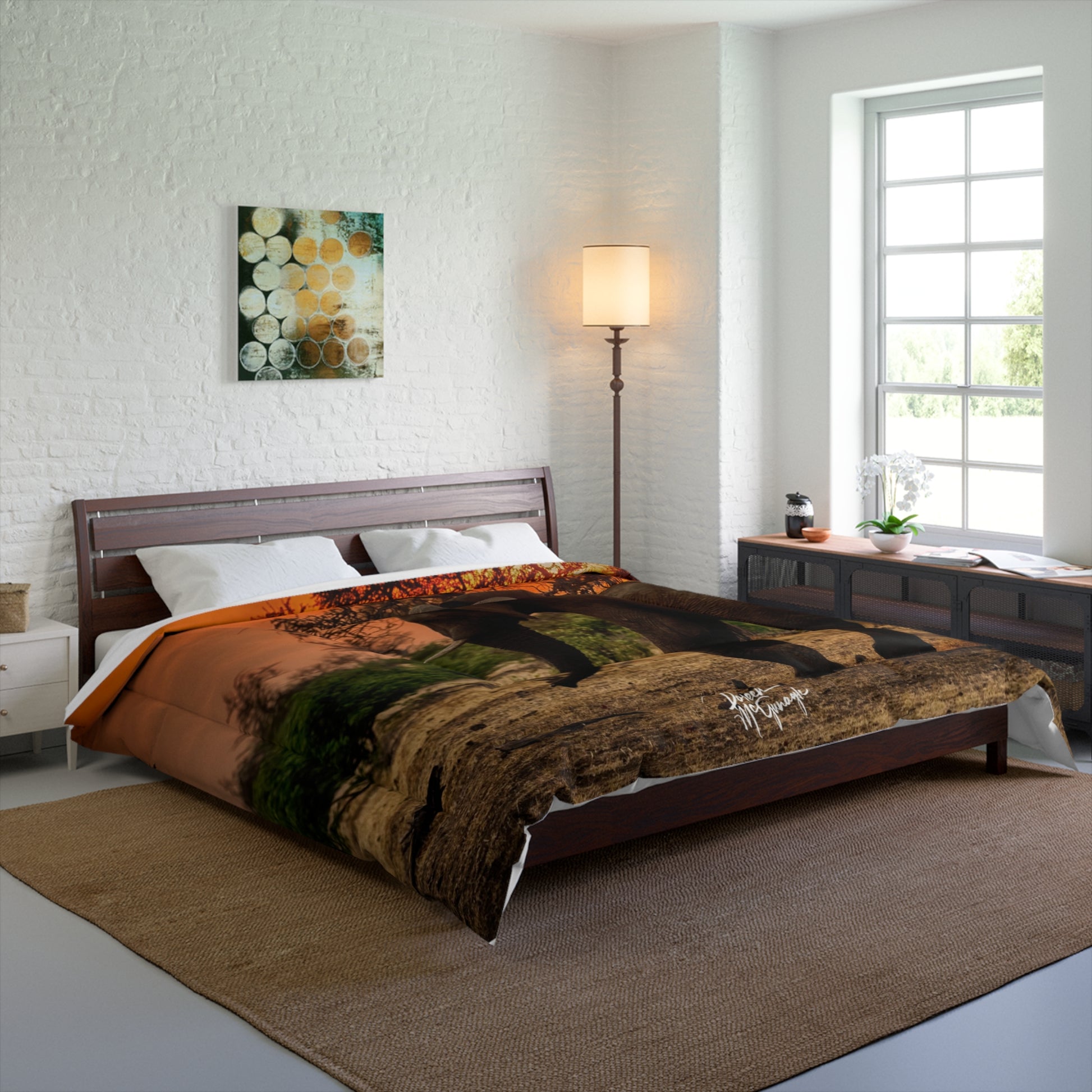 Transform your bedroom into a serene retreat with the Elephant Silhouette at Sunset Comforter by Enjoy Nature. This exquisite comforter, adorned with a stunning design of an elephant silhouette against a vibrant sunset, is perfect for those seeking earthy bedroom décor. Designed to infuse your space with a touch of nature, this comforter is an ideal addition to any earthy bedroom.