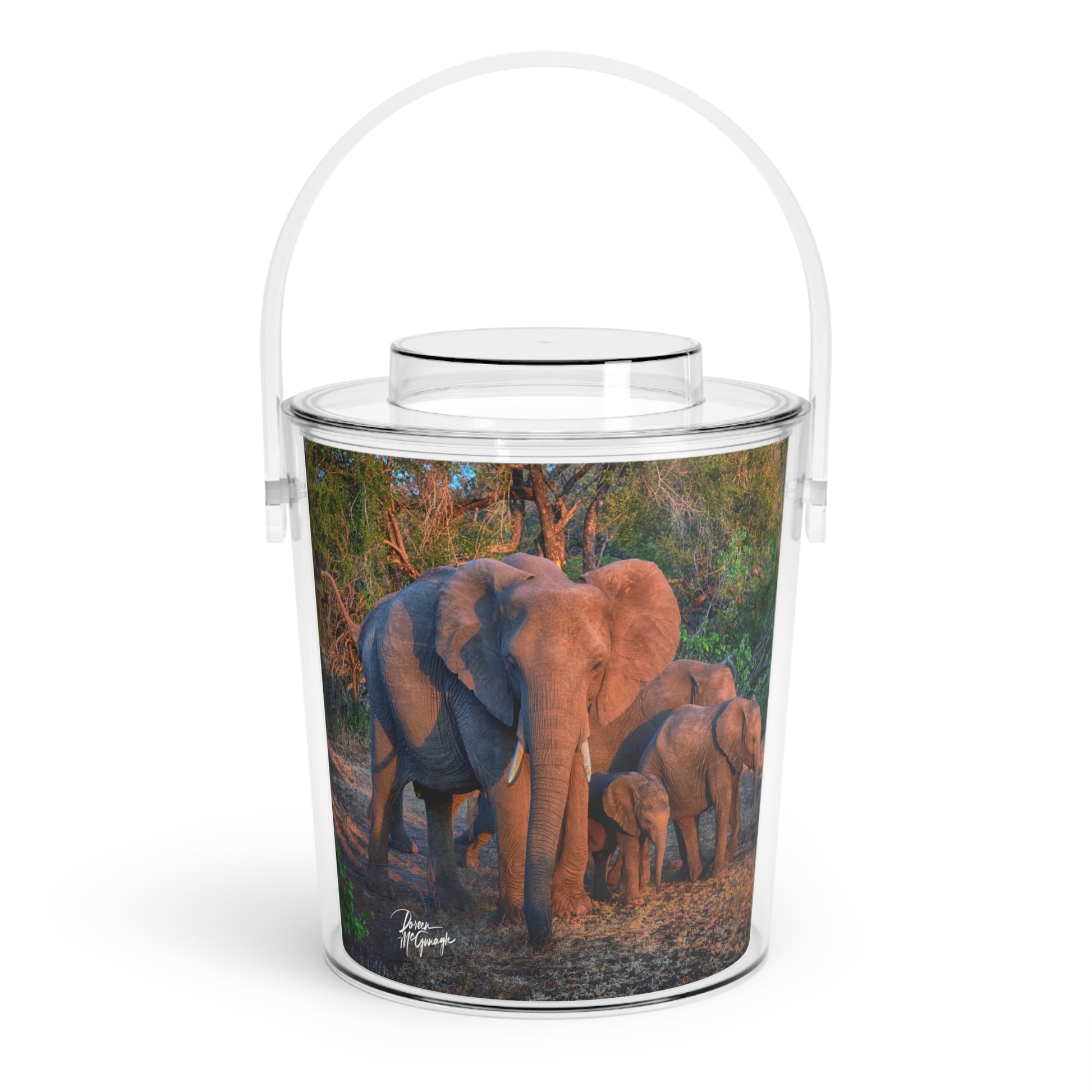 Bring a personal touch to any gathering that requires frosty beverages with the Elephant Family Insulated Ice Bucket by Enjoy Nature. This fine art curated ice bucket showcases a beautiful elephant family design, making it the perfect centerpiece for your entertaining needs. Crafted from high-quality acrylic, this ice bucket is not only beautiful but also durable and practical.