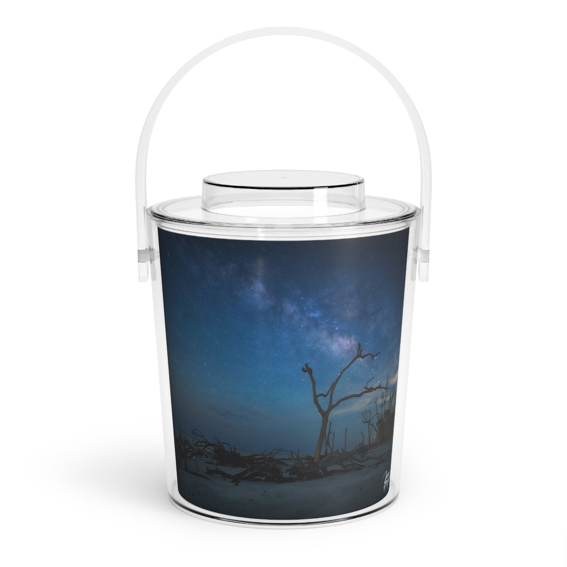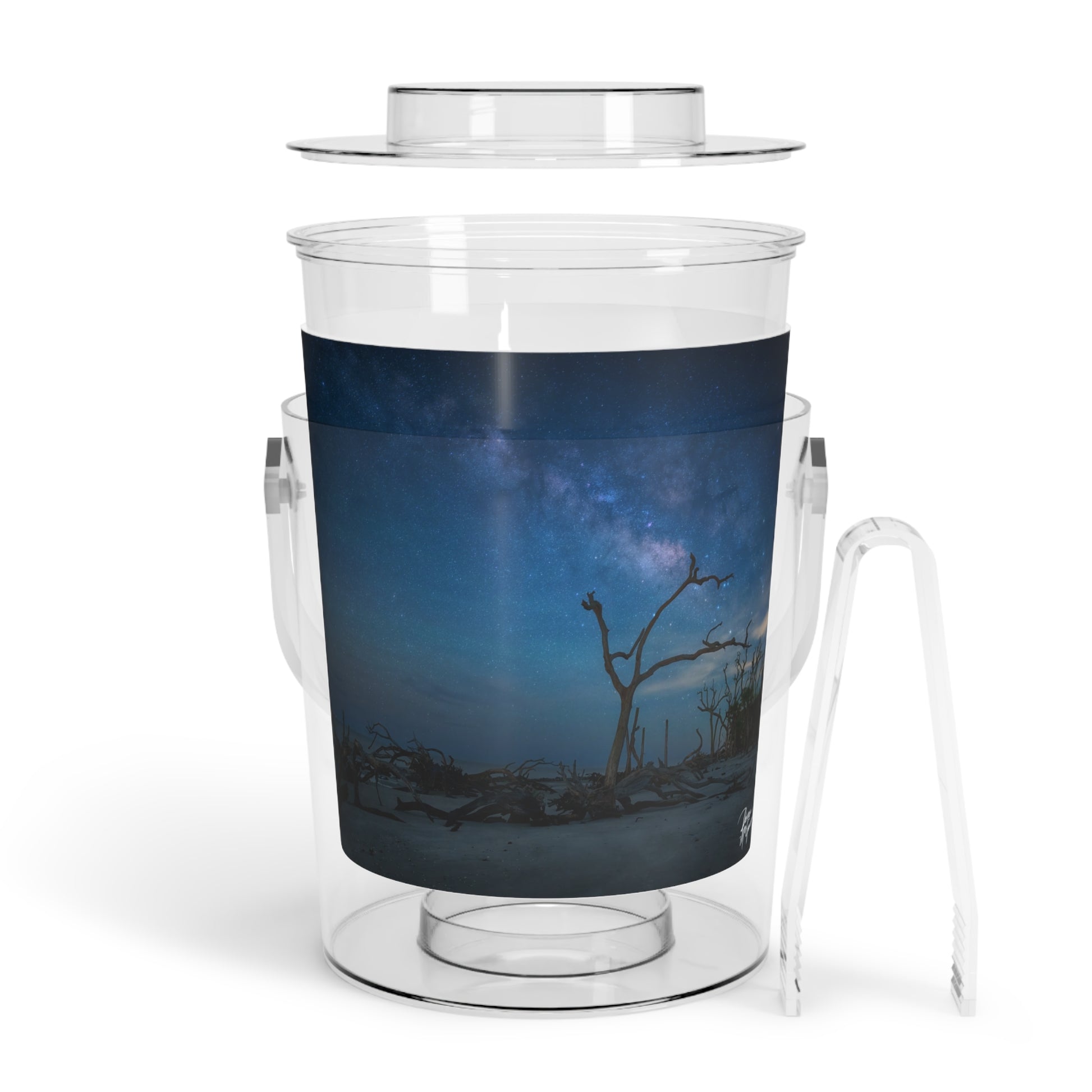 Bring a personal touch to any gathering that requires frosty beverages with the Milky Way Midnight Insulated Ice Bucket by Enjoy Nature. This fine art curated ice bucket showcases a mesmerizing Milky Way Midnight design, making it the perfect centerpiece for your entertaining needs. Crafted from high-quality acrylic, this ice bucket is not only beautiful but also durable and practical.