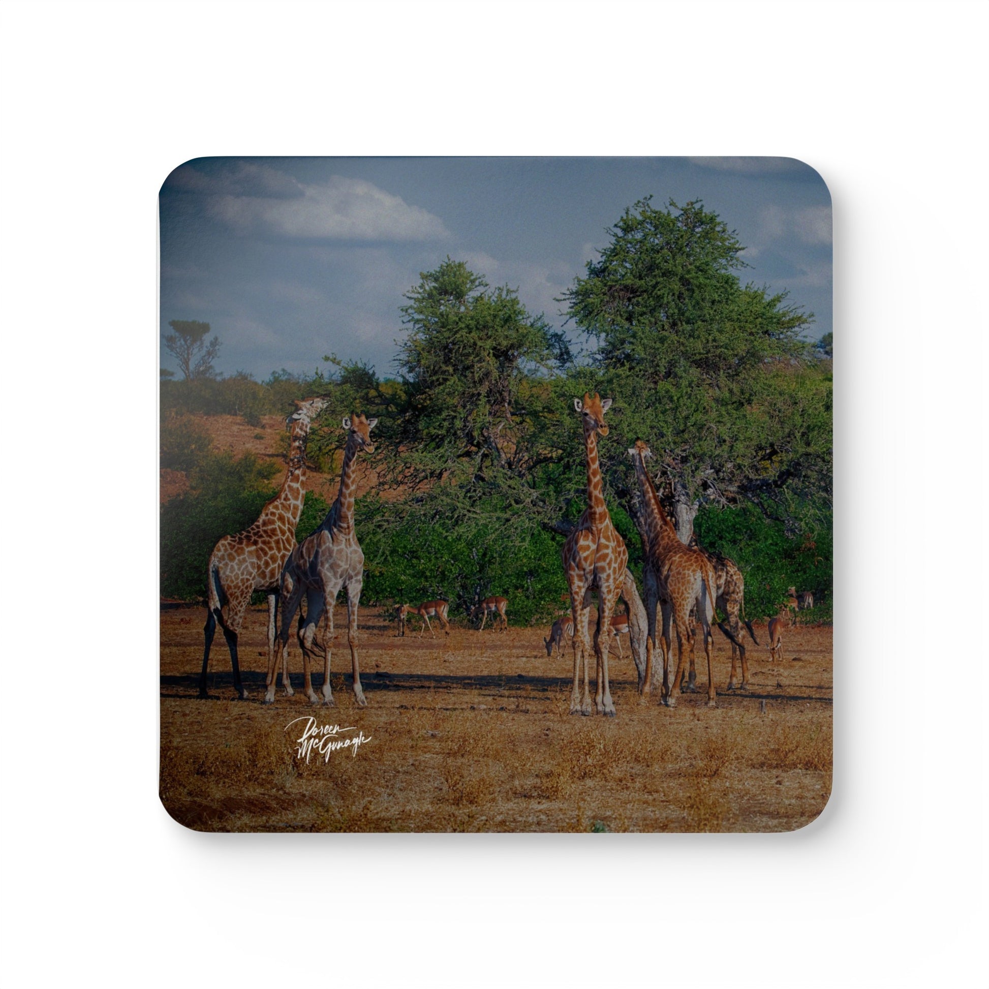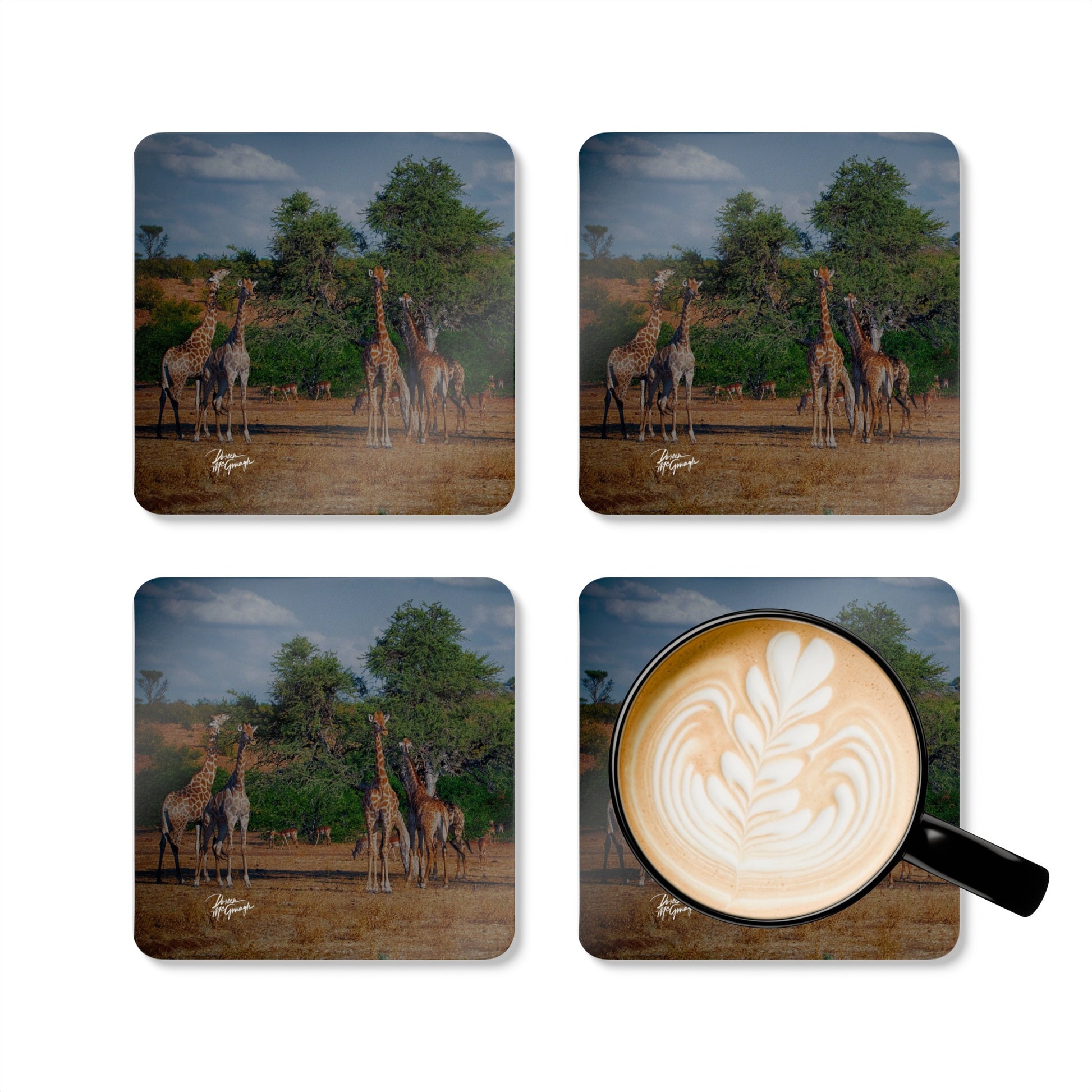 Add a touch of the natural world and graceful elegance to your table setting with our Giraffe Family Corkwood Coaster Set. Perfect for those who value wildlife coasters and artistic expressions in everyday objects. Enjoy the perfect blend of beauty and practicality, and let our coasters be a conversation starter at your next gathering!