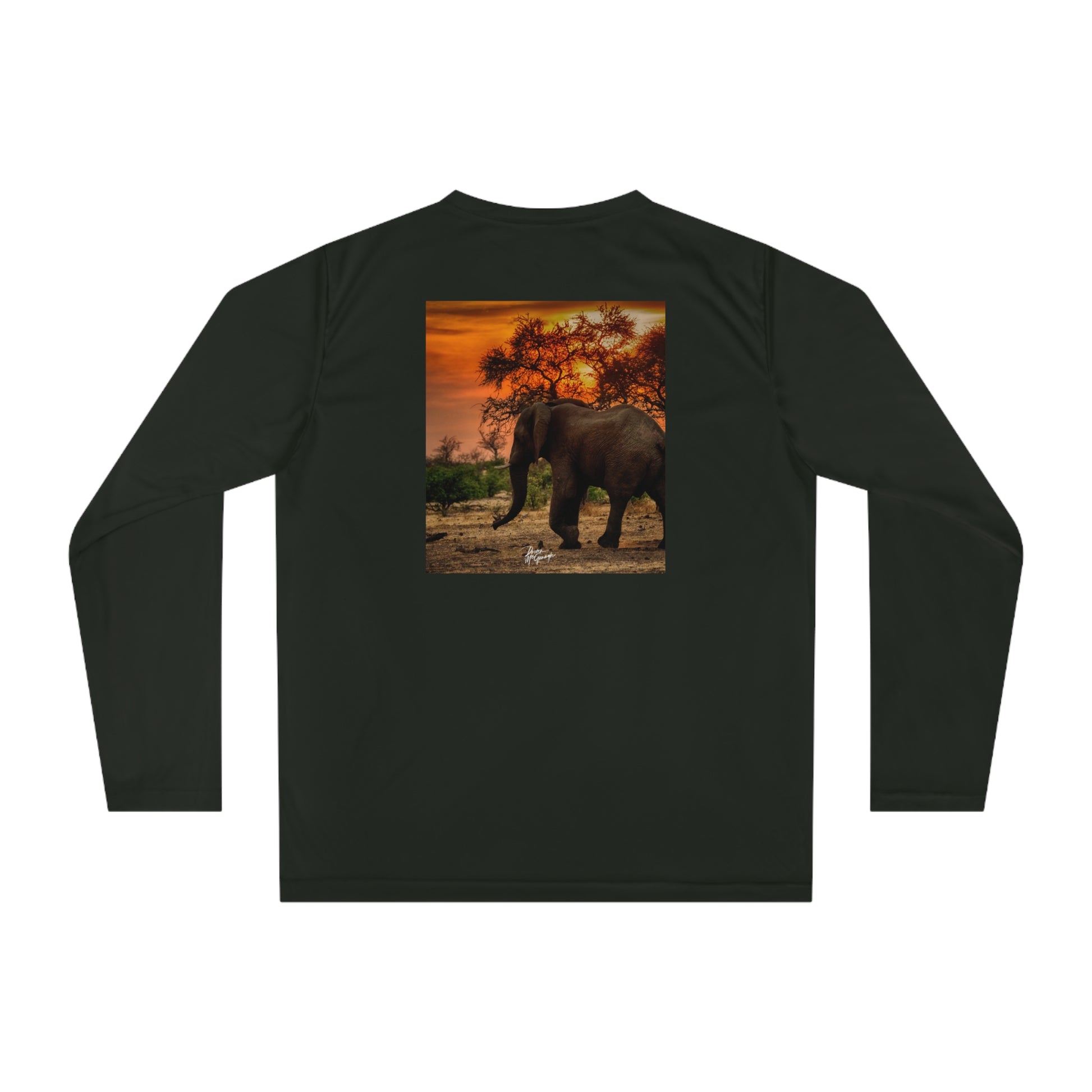 Unisex Long Sleeve Performance Tee - "Spirited Elephant Silhouette" by Enjoy Nature