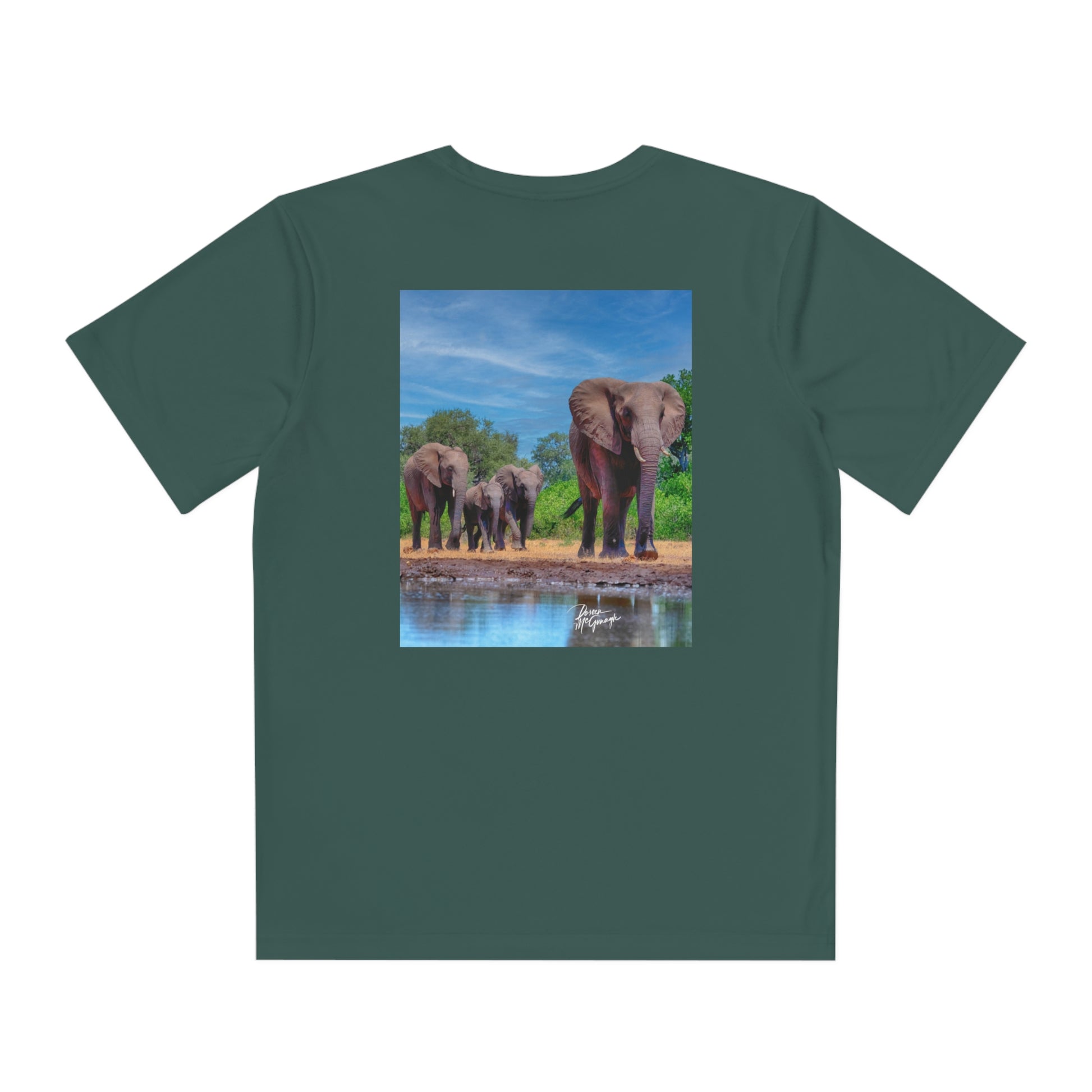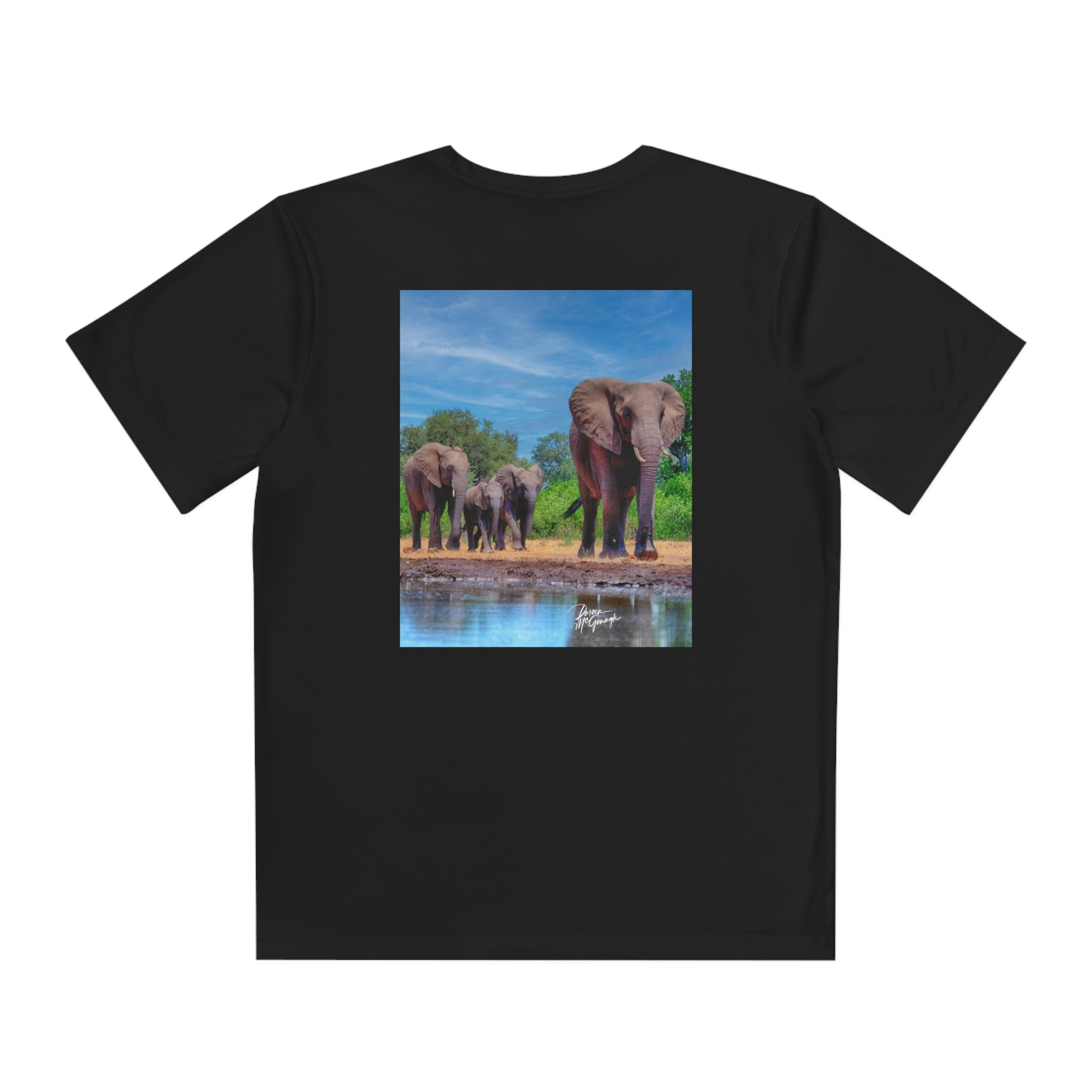 Introducing the Youth Competitor Tee featuring the beautiful Elephant Family at Watering Hole artwork by Enjoy Nature. This youth tee shirt is perfect for active kids who need a reliable and comfortable option for sports, play, and school life.