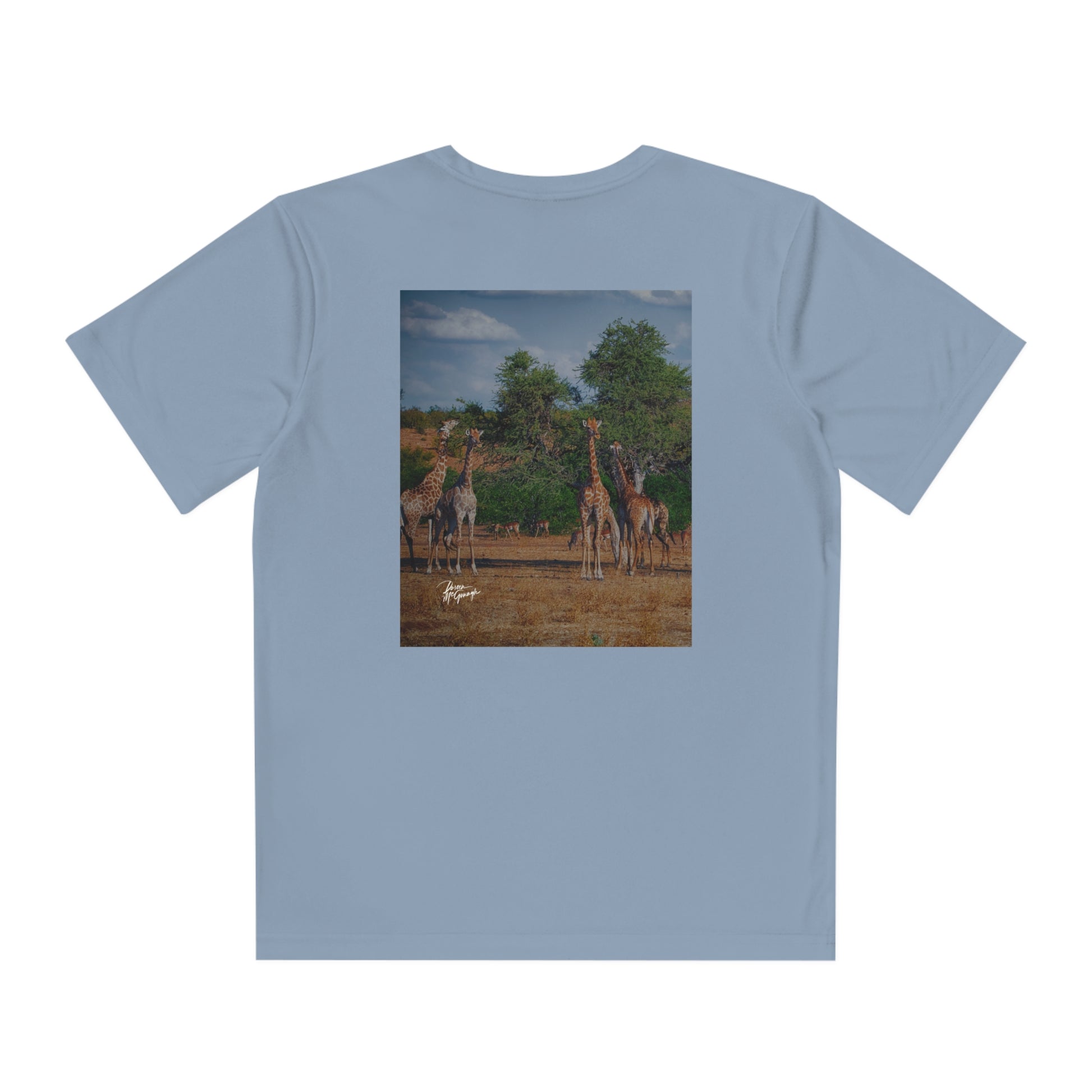 Introducing the Youth Competitor Tee featuring the enchanting Giraffe Family artwork by Enjoy Nature. This youth tee shirt is perfect for active kids who need a reliable and comfortable option for sports, play, and school life.